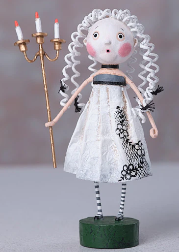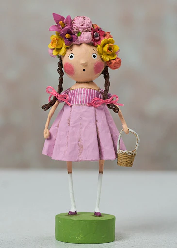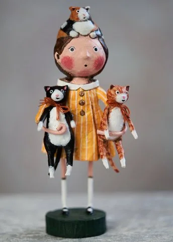 Lori Mitchell finds inspiration in old illustrations, children’s tales and anything whimsical. In 1998, she discovered folk art, and fell in love with the charm and nostalgia that this field embraces. Lori creates pieces that take people back to the magical years of childhood. In designing, Lori starts off with an idea, but as she sculpts, the characters begin to define their own personality. Lori is known for her exaggerated proportions and expressions…and every piece must have crazy socks!